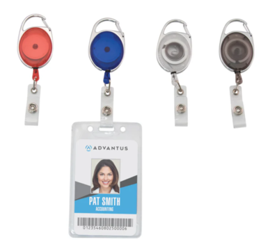 Translucent reel that clips securely to loops, bags, and more. Retractable 30" cord attaches to ID badge (not included)