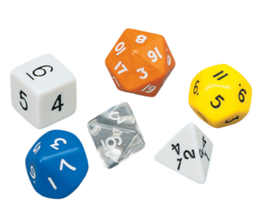 Set includes hexahedra, tetrahedra, octahedra, dodecahedra, icosahedra, and cube dice.
