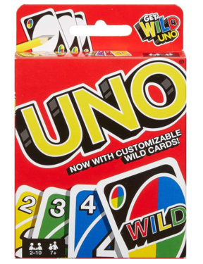 UNO is the classic card game of matching colours and numbers! Players take turns matching a card in their hand with the current card shown on top of the deck either by colour or number. Special action cards deliver game-changing moments and help you to defeat your opponents! These include Skips, Reverses, Draw Twos, colour-changing Wild and Draw Four Wild cards. You'll find 25 of each colour (red, green, blue, and yellow), plus the eight Wild cards, inside the 108-card deck. If you can't make a match, you must draw from the central pile! Don't forget to shout "UNO" when you only have one card remaining!