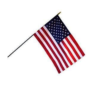 An attractive and durable cotton flag with stars and stripes sharply printed in clear, enduring colors. Pole included.