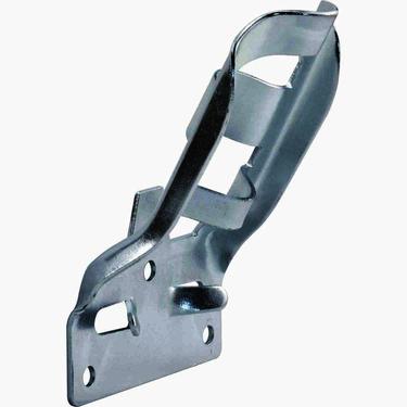 Stamped steel holder holds flag at 45 degree from vertical (wall) or horizontal (desk, window sill).